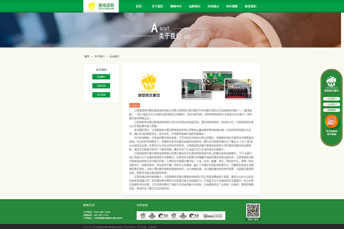 江西微型吧式餐饮管理连锁有限公司是江西首家以吧式餐饮与传统餐饮相结合打造新型吧式餐厅——“鑫海盗船”,一家以海盗文化为主题打造新型吧式主题餐饮,结合龙虾烧烤、卤味等特色美食以及青岛多彩扎啤为一体的餐饮连锁管理企业。