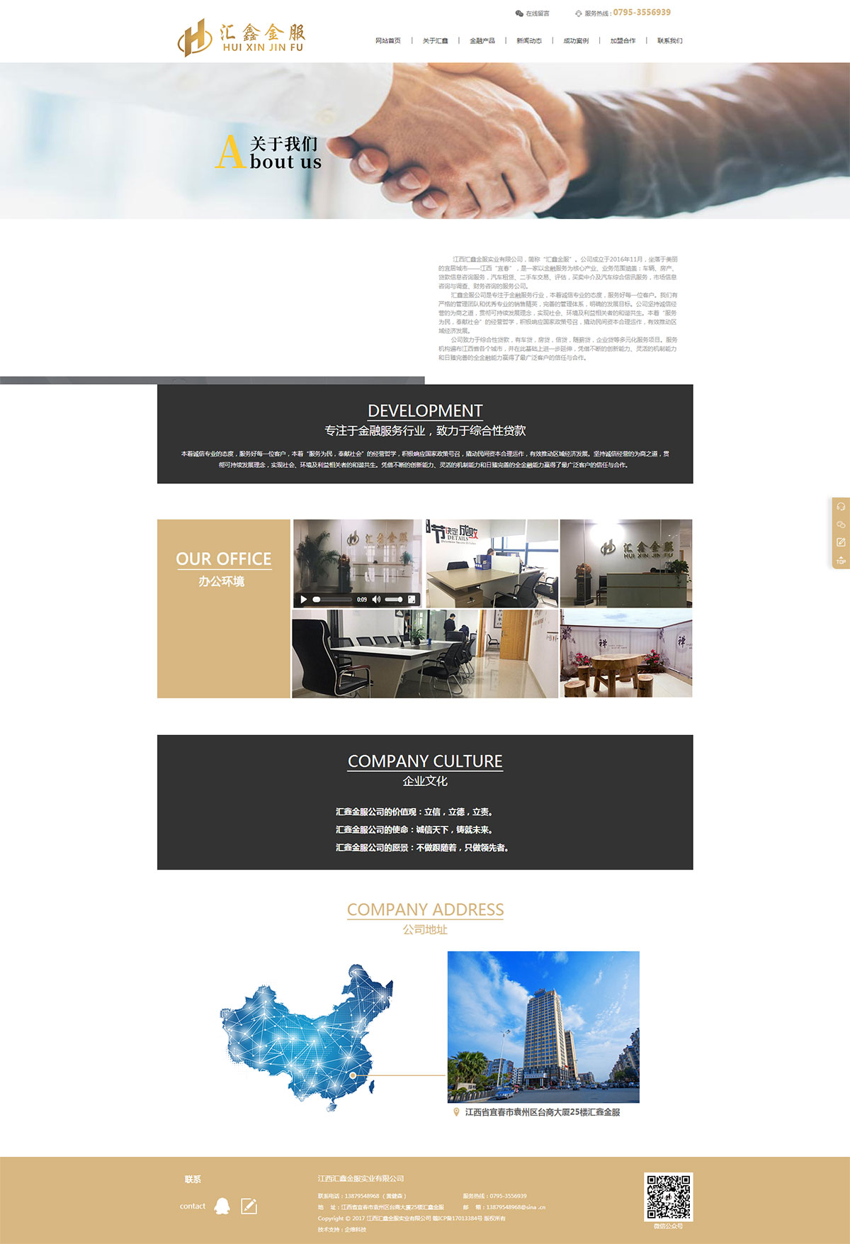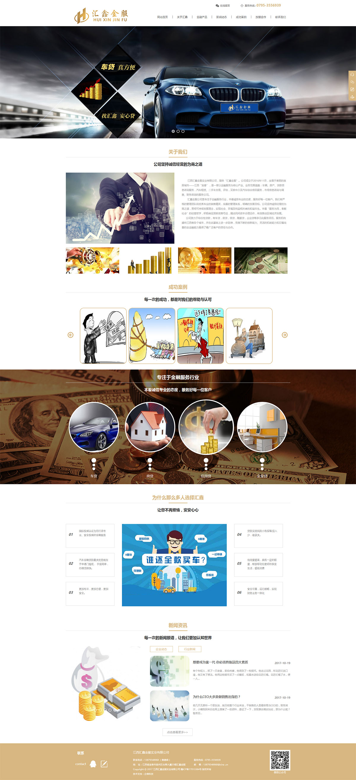 江西汇鑫金服实业有限公司,简称“汇鑫金服”。公司成立于2016年11月,坐落于美丽的宜居城市——江西“宜春”,是一家以金融服务为核心产业、业务范围涵盖:车辆、房产、贷款信息咨询服务,汽车租赁、二手车交易、评估,买卖中介及汽车综合信讯服务,市场信息咨询与调查、财务咨询的服务公司。
