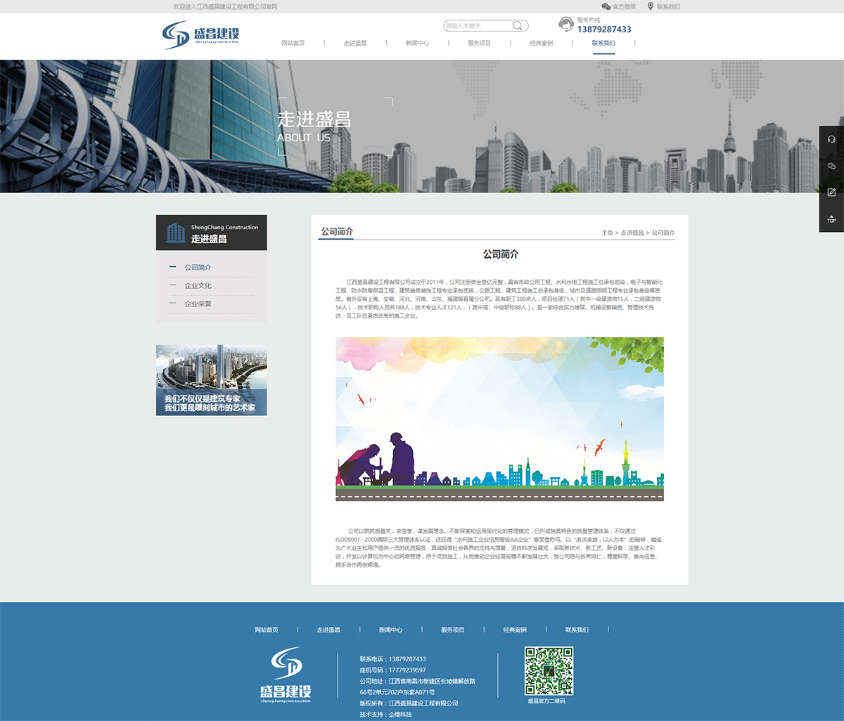 江西盛昌建设工程有限公司成立于2011年,公司注册资金壹亿元整,具有市政公用工程、水利水电工程施工总承包贰级,电子与智能化工程、防水防腐保温工程、建筑装修装饰工程专业承包贰级,公路工程、建筑工程施工总承包叁级,城市及道路照明工程专业承包叁级等资质。省外设有上海、安徽、河北、河南、山东、福建等直属分公司。现有职工380余人,项目经理71人(其中一级建造师15人,二级建造师56人),技术职称人员共188人,技术专业人才121人,(其中高、中级职称88人)。是一家综合实力雄厚、机械设备精良、管理技术先进、员工队伍素质优秀的施工企业。