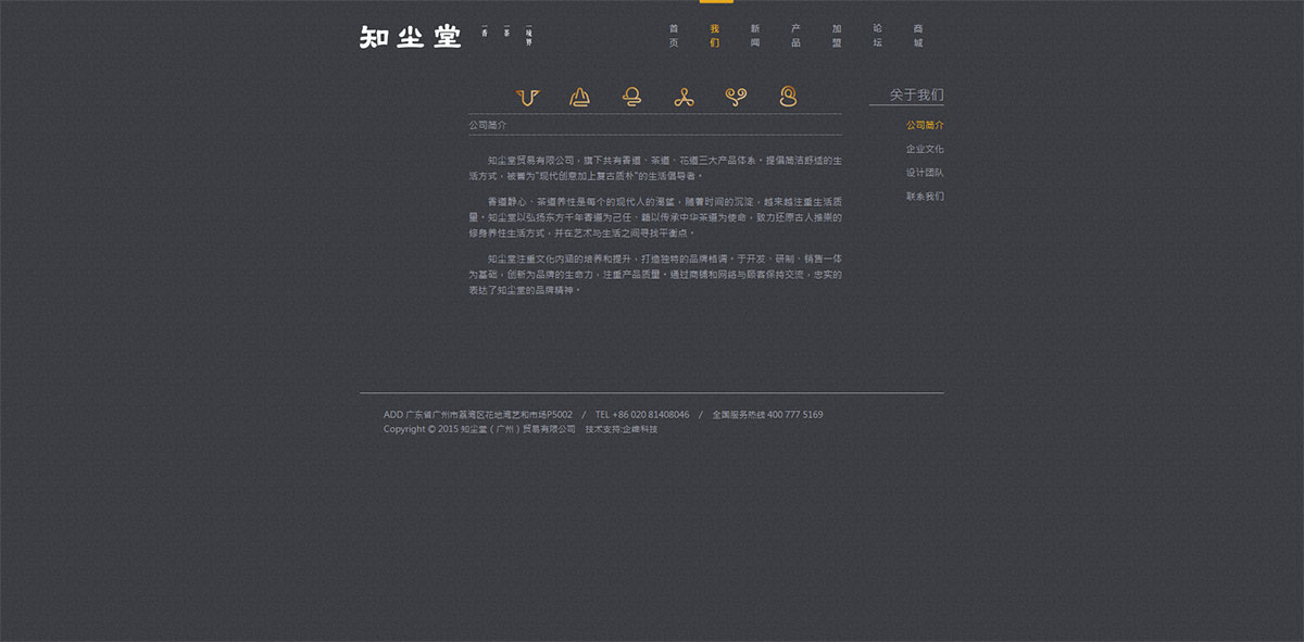 知尘堂贸易有限公司,旗下共有香道、茶道、花道三大产品体系。提倡简洁舒适的生活方式,被誉为"现代创意加上复古质朴"的生活倡导者。